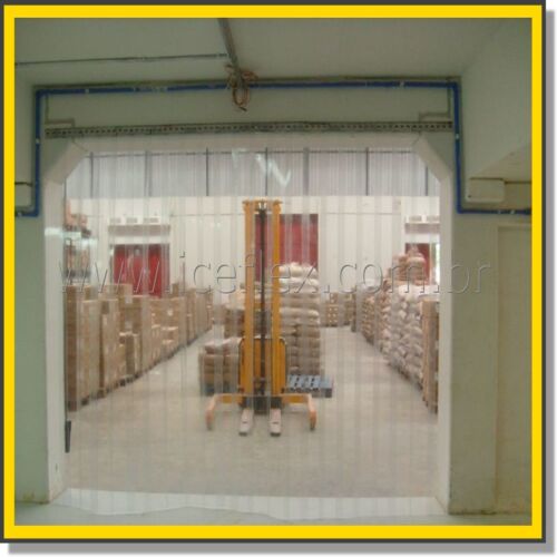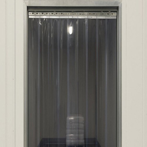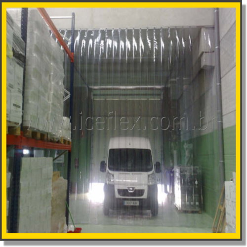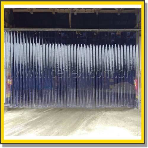 A Cortina de PVC transparente é 100% reciclável e pode ser instalada em tiras sobrepostas para vedação total.